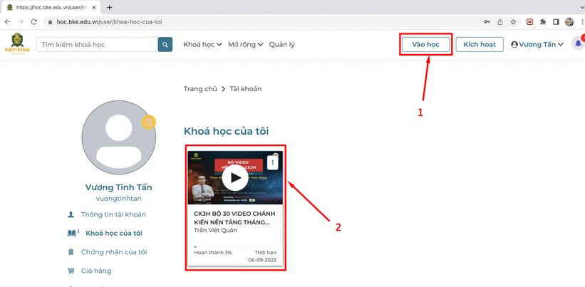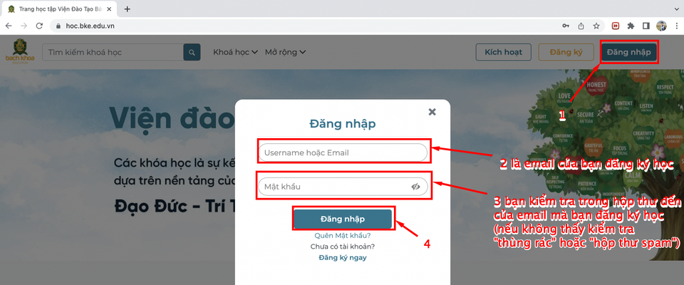 🍀 Bước 1: Truy cập vào website và đăng nhập. Link 👉: https://hoc.bke.edu.vn/
