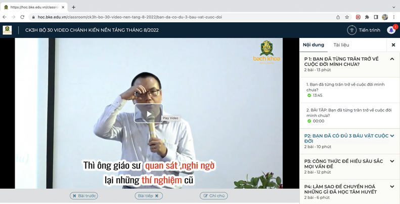 🍀 Bước 3: Bạn chú ý tập trung và xem hết các video + làm bài tập trắc nghiệm.
